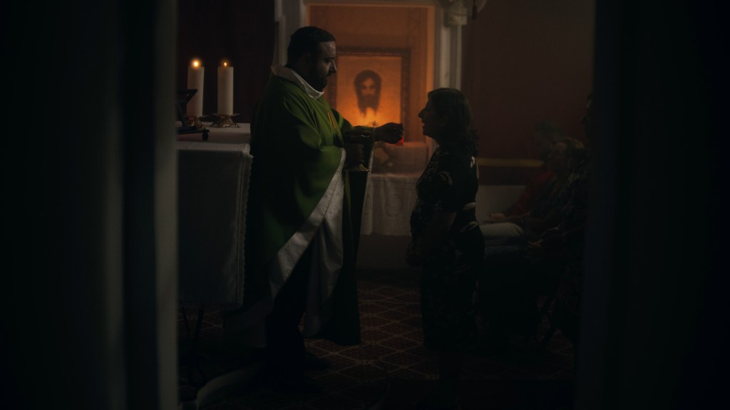 A priest plans to steal a painting from his church, but is troubled by guilt.