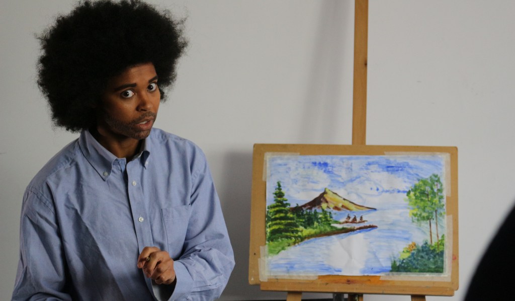 A film about Isabel Adomakoh Young, known as Izzy Aman in the drag world. We witness Isabel become Izzy, but more specifically on this occasion, Bob Ross. Through thrusting, painting and mimicry we witness a gender bending revolutionary performance alongside a candid and powerful conversation about the queer experience.